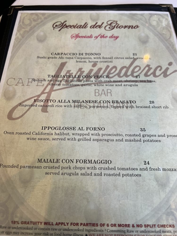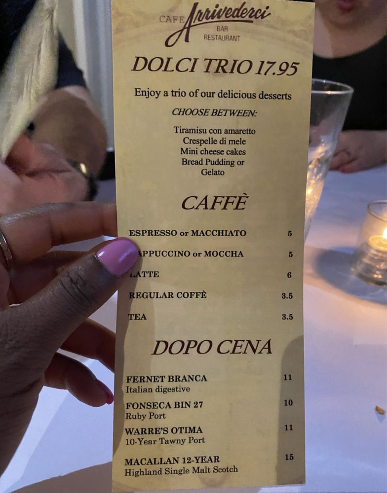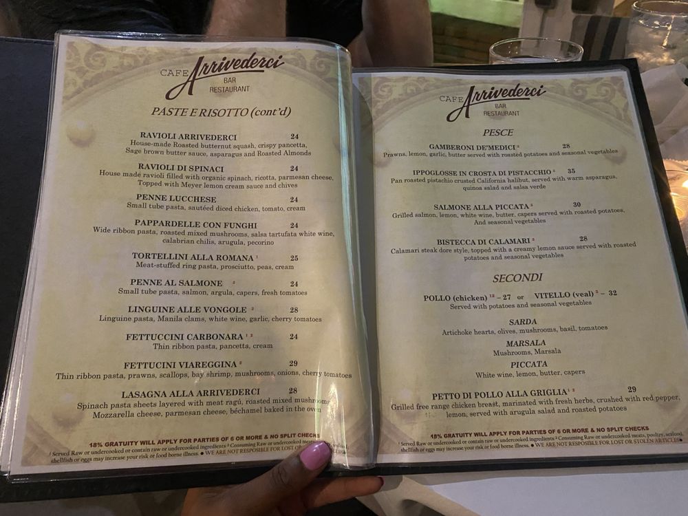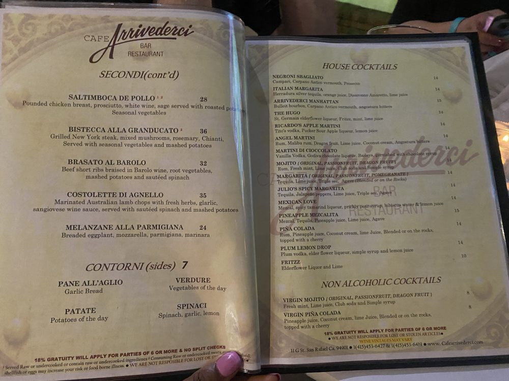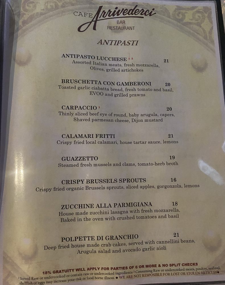 Café Arrivederci Menu (2025 Update)